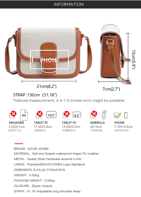 کیف دوشی زنانه دیوید جونز مدل CM7014
