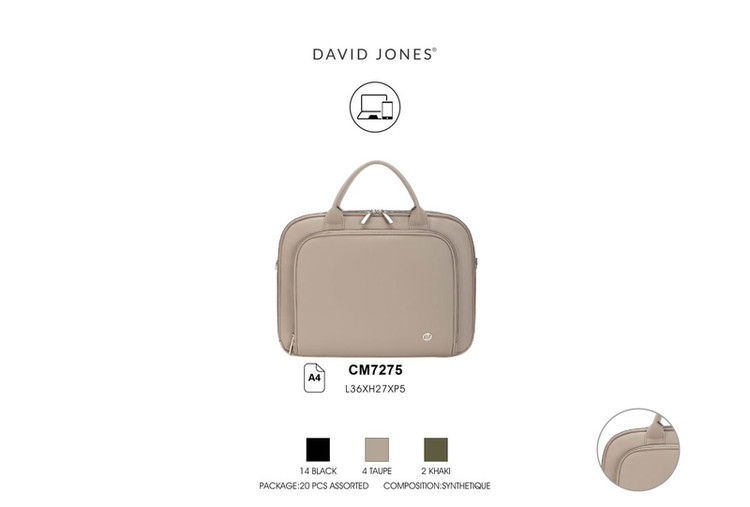 کیف اداری دیوید جونز مدل CM7275، انتخابی شیک و کاربردی برای افرادی است که بهدنبال ترکیب استایل کلاسیک با کاربری روزمره هستند. این کیف با طراحی مینیمال و دوخت ظریف، مناسب استفاده در محیطهای رسمی و نیمهرسمی همچون محل کار، جلسات و دانشگاه است.